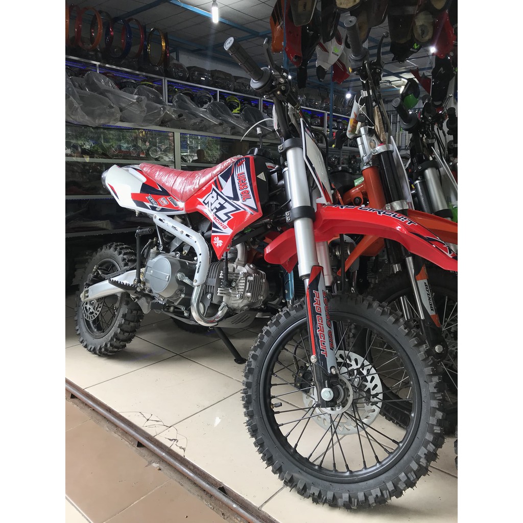 Tidak hanya kualitas desain dan mesin yang berkelas sebanding dengan harga yang di berikan sepeda motor mini ini sudah menggunakan rem depan dan belalakang yang menggunakan tipe disc dengan bekalan dual piston calliper. Motor trail Kawasaki KSR PRO Mini Supermoto Motocross not moge klx kx. Ukuran P x L X T-nya hanya 1560 mm x 650 mm x 955 mm dengan ukuran pelek depan 14 inci dan belakang 12 inci.
